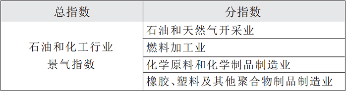 石油和化工行业景气指数由中国石油和化学工业联合会与山东卓创资讯股份有限公司联合编制,是石油化工行业的微观景气循环监控指标,包括“石油和天然气开采业景气指数”“燃料加工业景气指数”“化学原料和化学制品制造业景气指数”“橡胶、塑料及其他聚合物制品制造业景气指数”4个分指数。石油和化工行业景气指数的景气指标选择以度量行业的潜在产出和经济效益为标准,包括生产类微观数据和行业效益类数据,其中生产类微观数据包括产能利用率、产品盈利能力、产成品库存水平。基础数据来源于与千余家企业建立的定期调研评估结果。