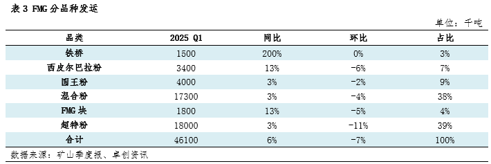 力拓的铁矿业务分为西澳Pilbara和加拿大IOC两部分,其中Pilbara的产量约占总产量的95%左右。2025年一季度受气旋天气影响,力拓产量、发运量均受到明显影响,力拓皮尔巴拉业务铁矿石产量6977万吨,环比回落19.3%,同比下降10.5%;发运量为7070万吨,环比回落17.4%,同比下降9.3%。