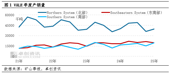 南部系统同样位于巴西米纳斯吉拉斯州的铁四角地区,其产出的铁矿石品位在35%-60%之间,一季度南部系统的产量同比下降110万吨,主要是基于当前市场环境优先生产高毛利产品的战略调整。VGR1项目的产能提升持续推进,预计2026年二季度完成建设。