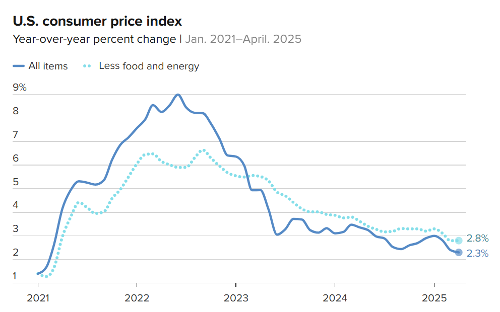 【导读】通胀降温!美国4月CPI同比增长2.3%,为自2021年2月以来最低水平
