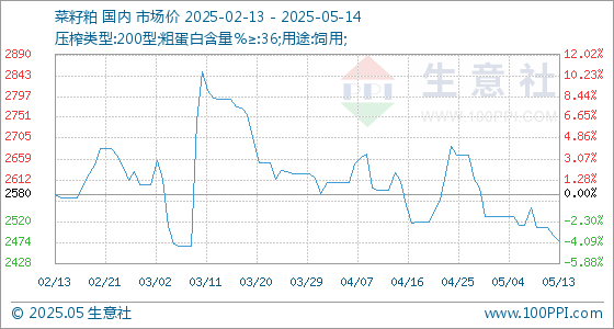 5月14日生意社菜籽粕基准价为2476.67元/吨