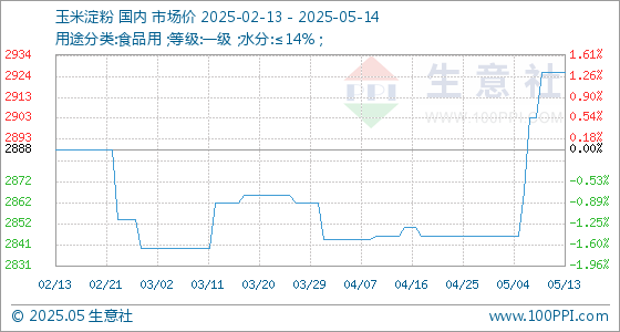 5月14日生意社玉米淀粉基准价为2926.00元/吨