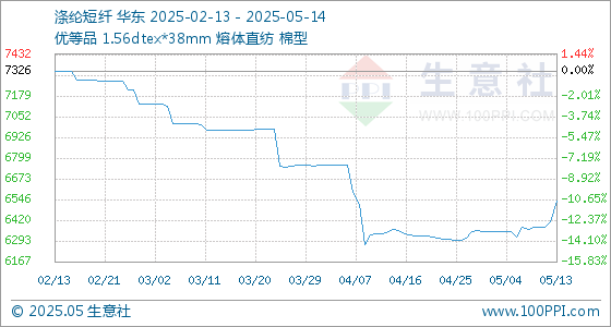5月14日生意社涤纶短纤基准价为6535.29元/吨