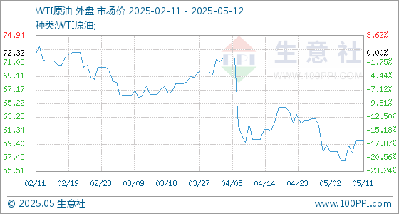 5月12日生意社WTI原油基准价为59.91美元/桶