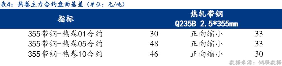 14日市场热卷10合约与355带钢价差正向缩小30元/吨 ,热卷05合约与355带钢价差正向缩小33元/吨。
