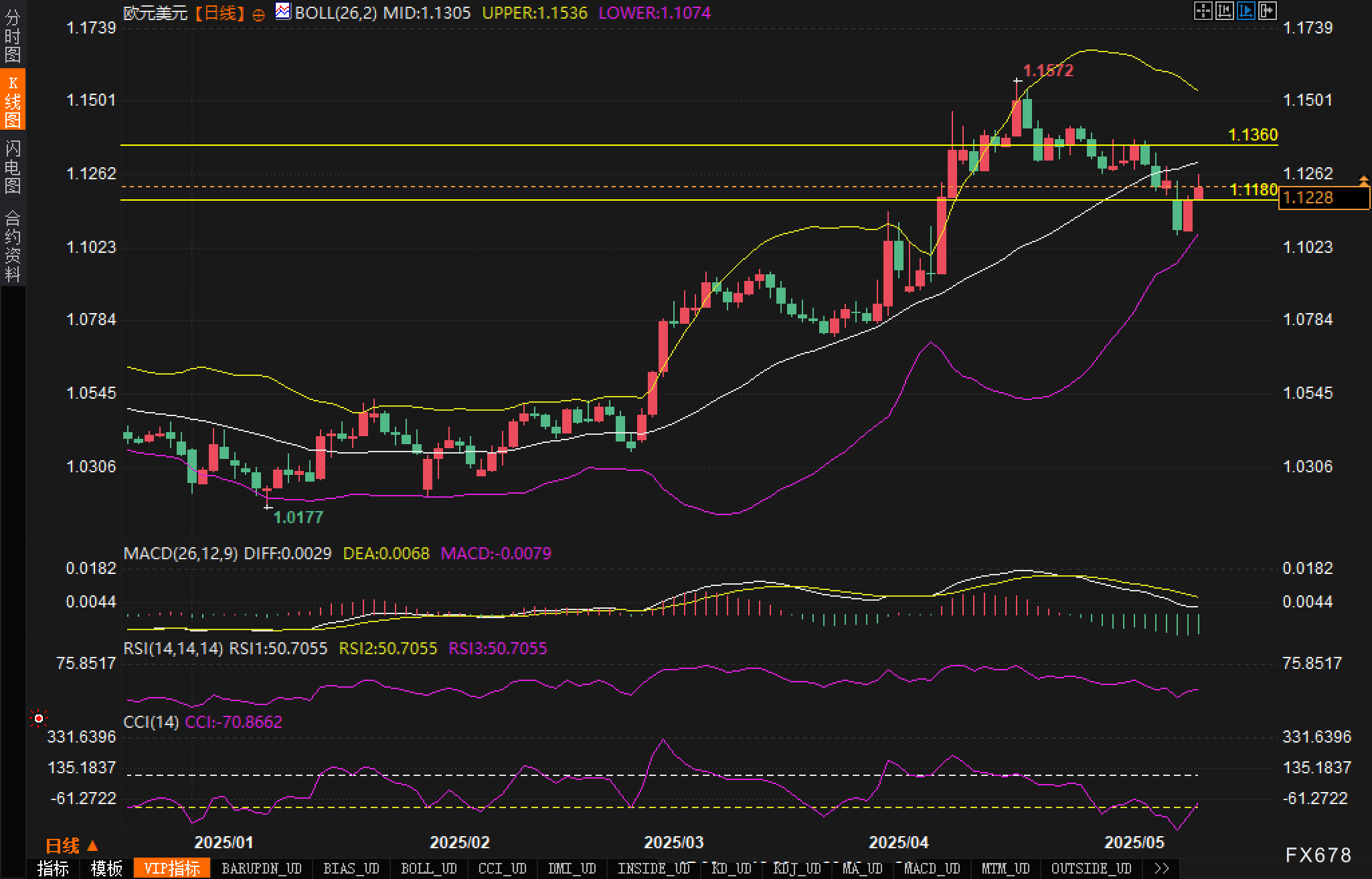 若美元持续走软,特别是在美联储主席鲍威尔讲话偏向鸽派的情况下,欧元/美元可能突破1.1360阻力,向1.1500-1.1572区域挺进。4月零售销售和PPI数据若不及预期,将进一步支持这一情景。欧美贸易谈判如有积极进展,也将为欧元提供额外支撑。
