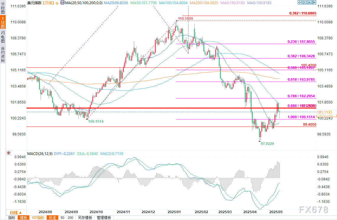 汇通财经APP讯——周三(5月14日)欧盘时段,美元指数(DXY)盘中跌至100.58,下跌0.40%。此前,投资者因低于预期的通胀数据和缓和的贸易紧张局势,重新调整了对美联储政策的预期。