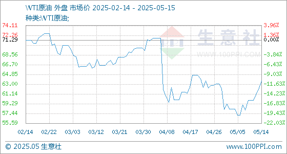 5月15日生意社WTI原油基准价为63.67美元/桶