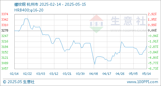 5月15日生意社螺纹钢基准价为3191.78元/吨