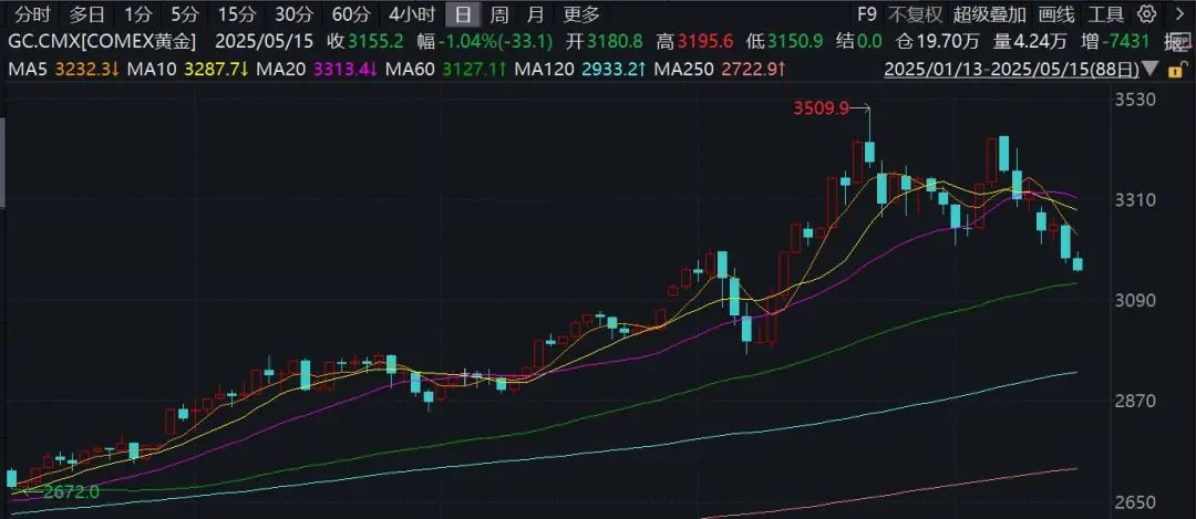 昨日黄金大跌,现货黄金失守3170美元/盎司,跌超2%;周三COMEX黄金期货跌1.91%,时隔一个月再次失守3200美元关口。金价已从上个月的3500美元高点下跌了9%。