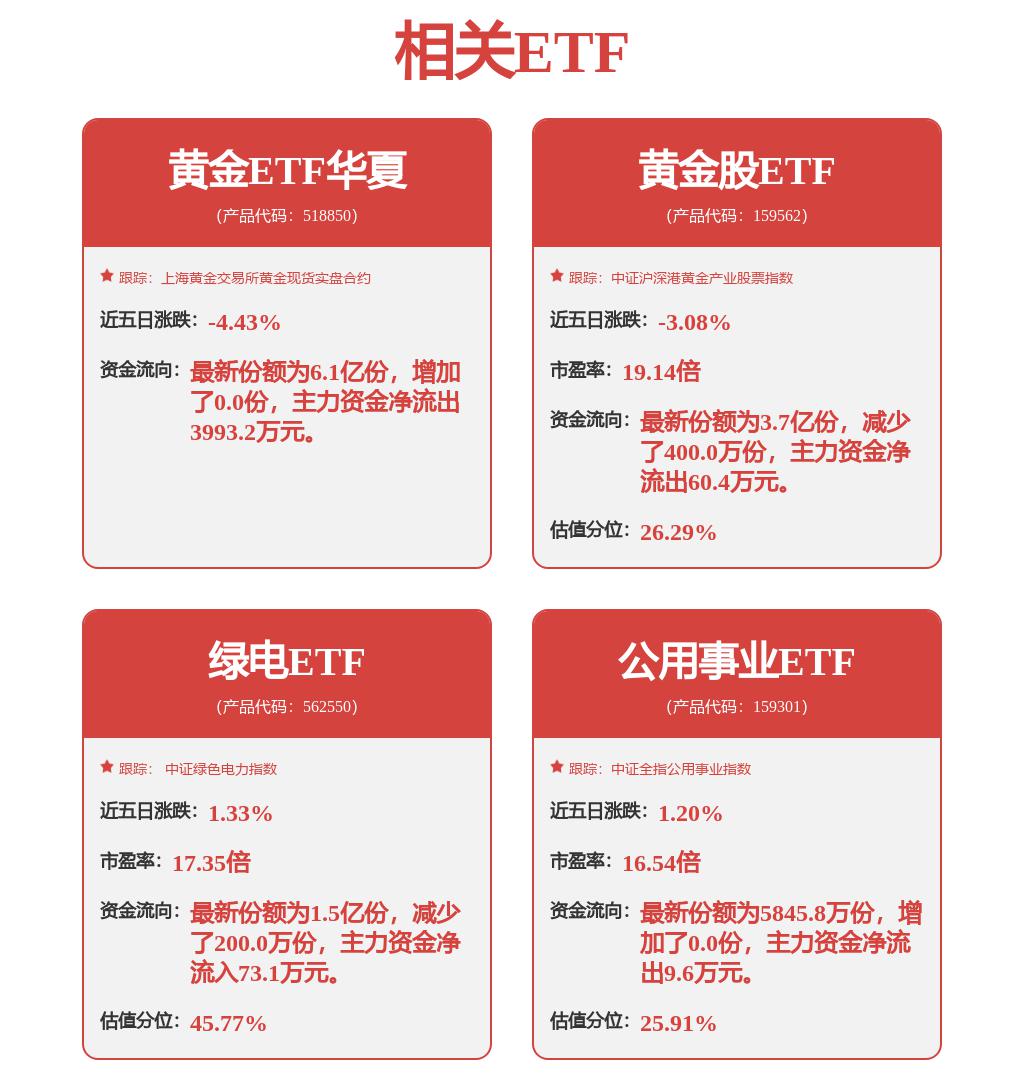 本次降费后,黄金ETF华夏(518850)、黄金股ETF(159562)合计0.2%的费率均为赛道最低档。以10万元投资为例,比普遍0.6%的产品,持有一年可节省400元成本,长期复利效应显著,助力投资人更低成本参与黄金赛道行情。