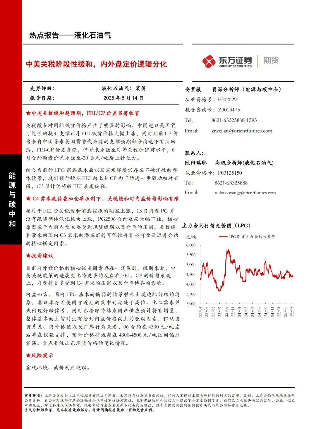 液化石油气:中美关税阶段性缓和,内外盘定价逻辑分化