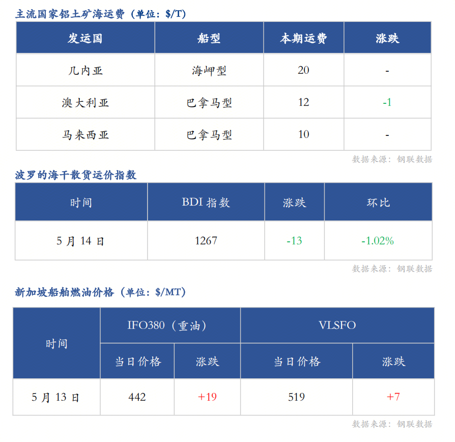 Mysteel日报:5月15日铝土矿及海运费日度价格监控