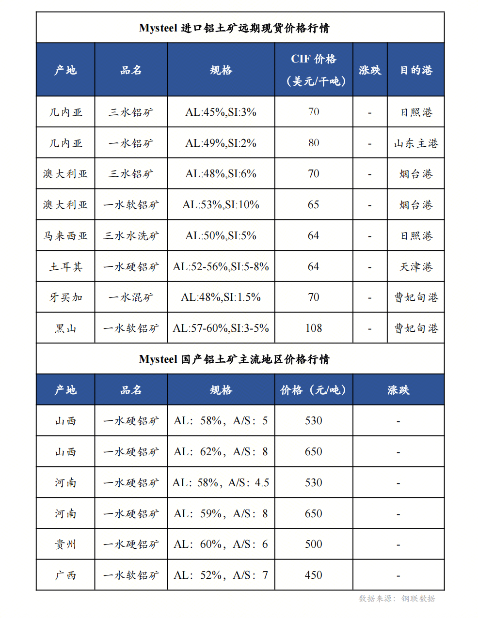 5月15日铝土矿价格基本保持不变,买卖双方价格博弈现象仍存,供大于求的市场状况下,卖方处于被动状态。