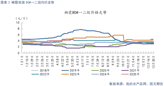 当库存低位对价格形成底部支撑,但现货端受高价抑制效应显现,叠加夏季时令水果上市冲击,价格续涨动能不足,预计将维持平稳运行。新季生长方面,西北局部地区坐果率不佳,不过今年主产区未受霜冻影响,整体花量充足,具体减产幅度需待套袋数据验证。现货平稳运行与减产预期分歧使得市场短期观望情绪浓厚,行情进入回调整理阶段。但从中期来看,低库存背景叠加潜在减产预期仍将构成双重支撑,基本面整体偏强。苹果2510建议区间7600-8000元/吨。