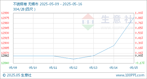 5月16日,生意社不锈钢卷基准价为12978.00元/吨。