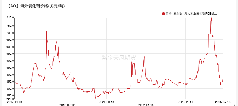 海外方面,海外氧化铝价格持续走弱,氧化铝成交价格上至370美元/吨。