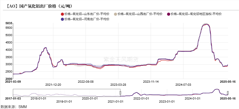 本周国内氧化铝价格止跌企稳,其中山东价格上涨至2920元/吨,山西价格上至2975元/吨,贵州价格上至3025元/吨
