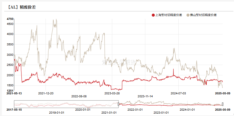 废铝方面,受沪铝价格下跌影响,上周精废价差明显回落,废铝供应利润整体有所收敛。