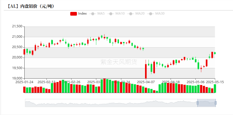 本周沪铝价格大幅上调,开于19590元/吨,收于20140元/吨,周涨2.81%,周内高点20290元/吨,低点19555元/吨;伦铝开于2408美元/吨,收于4.49美元/吨,周涨4.49%。