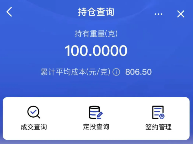 5月7日,黄金下跌,小郭果断在工行分两次买入了150克如意积存金,买入价格在809元/克附近,花费12.1万多。没想到一买就跌。小郭看着黄金走势,心里有点急,当天再次紧急在建行“补仓”100克积存金,这次积存价格为806.5元/克,她又投入8万多元。