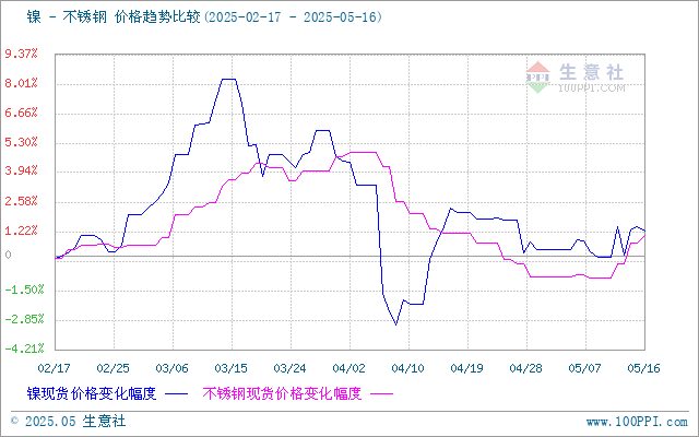 据生意社价差分析工具显示,镍和不锈钢价格基本相似,镍价格有小幅回落,不锈钢价格表现会滞后。