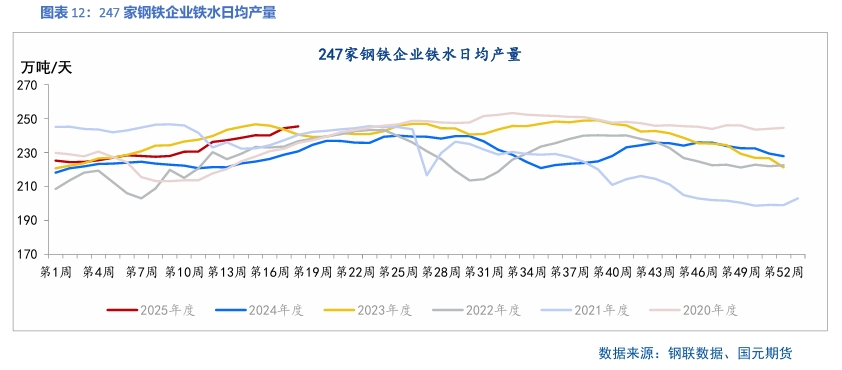 双焦:目前铁水升至245.42万吨/天,高于市场预期。钢材产量及利润明显高于近两年同期。目前钢厂多以短期例行检修为主,铁水产量或窄幅震荡,支撑双焦需求。煤矿产量基本维持正常,供应相对宽松局面暂未得到改善。