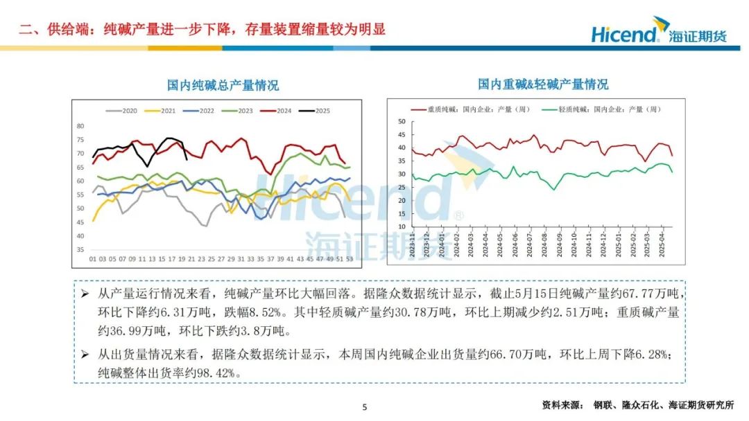 现阶段纯碱盘面整体上行动能较为有限,价格始终处于低位震荡,弱势格局未有改善。基本面来看,本周纯碱负荷环比明显下滑,供给端缩量逐步兑现给予盘面部分抗跌支撑,但持续疲弱需求以及新增产能释放令盘面承压回落。此外成本端来看,近期纯碱成本大幅下移,成本支撑弱化明显。鉴于需求支撑乏力以及成本端下移,预估后续纯碱价格恐难改弱势,延续低位震荡运行的概率较大。
