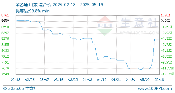 5月19日生意社苯乙烯基准价为8270.00元/吨