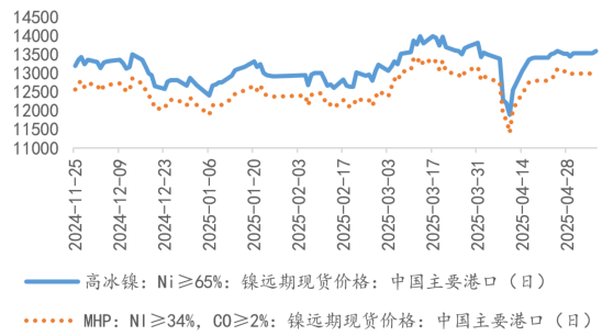 图:高冰镍及MHP港口价格(美元/金属吨)
