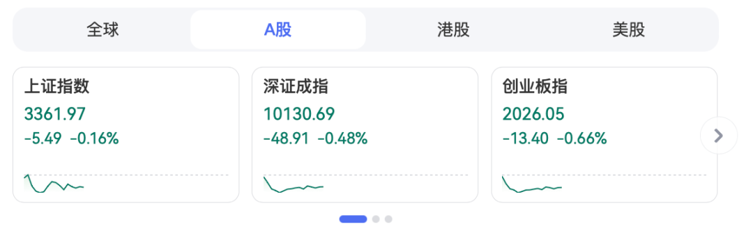 A股指数走弱,创业板指盘中下挫跌逾1.00%,沪指跌0.16%,深成指跌0.48%。机器人、消费电子、医美、白酒等方向跌幅居前,沪深京三市下跌个股近3600只。