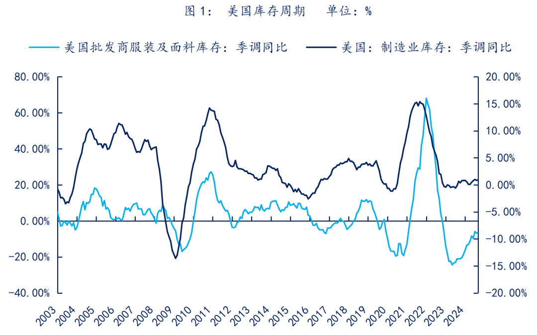 再从美国目前商品库存周期角度可以看出其补库周期仍在延续,其偏低的库存水平印证了其仍然存在较大的纺服进口需求。而本次关税提升之后,例如沃尔玛在内的美国零售巨头自行承担所有关税,通知中国制造商发货就足以表现出了美国对于中国制造的依赖。对于美国消费市场而言,关税抬升最终导致的进口成本增加会体现在零售价格的上涨上来,而美联储对于压制CPI增长的决心并未动摇,使得关税战与美国国内控制物价水平的目标背道而驰。所以,长期的贸易争端对于美国并不存在好处。