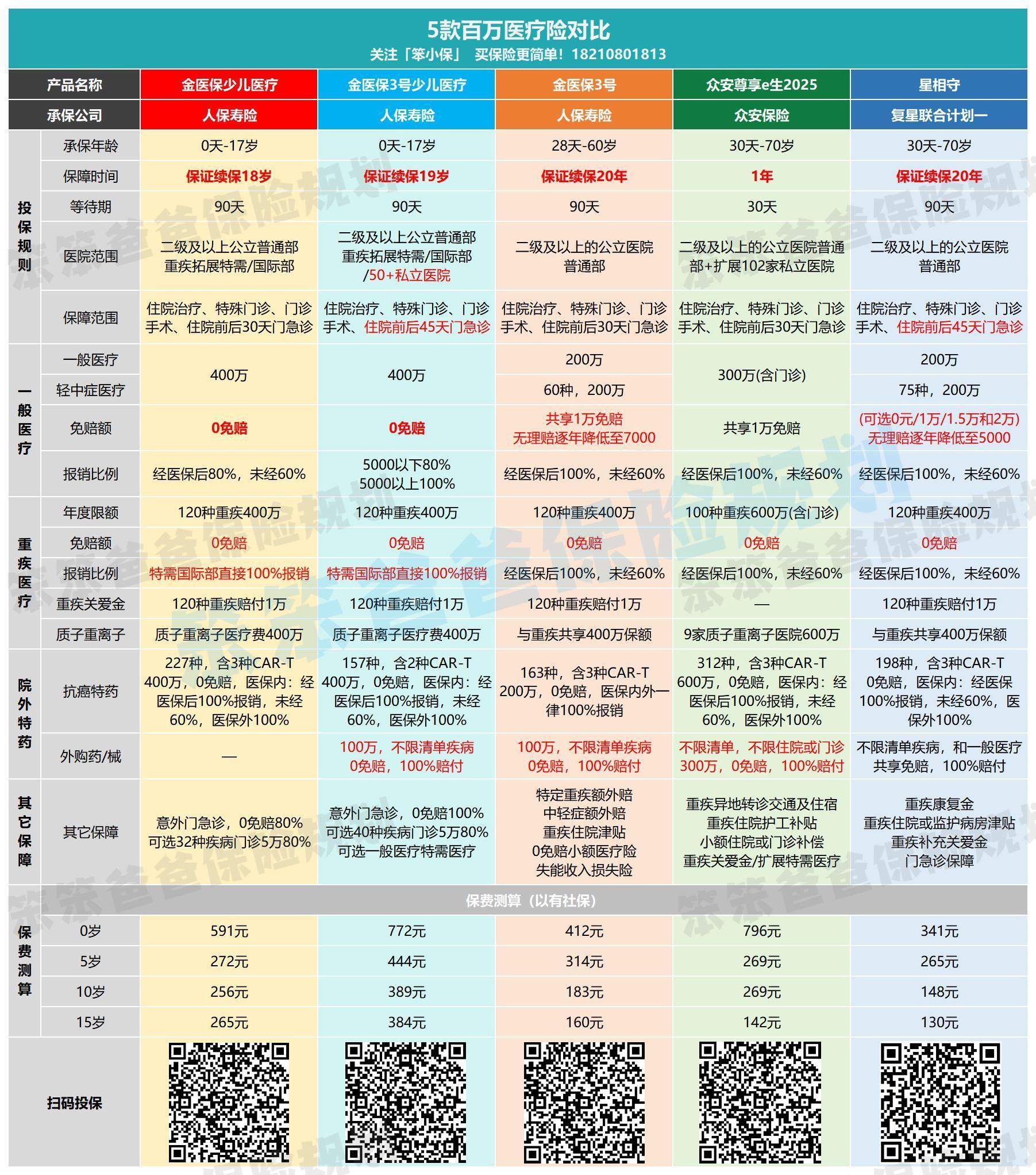 保证续保到18岁,大公司出品,400万保额,最大亮点是0免赔额!