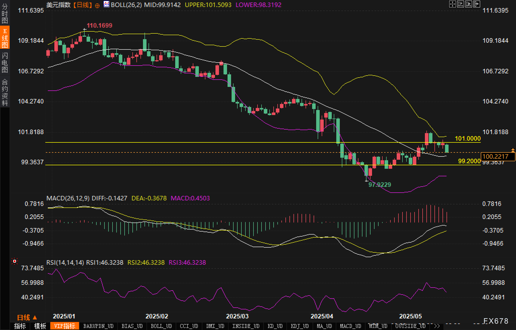关键阻力位方面,101和布林上轨101.5093将成为后续目标。如果能够有效突破这些阻力,美元指数有望重新测试104水平,甚至挑战更高的106阻力位。