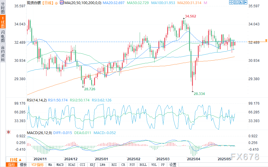 汇通财经APP讯——周一(5月19日)欧盘时段,现货白银盘中涨幅近1%。白银价格本周以小幅上涨开局,坚定守住关键技术支撑位,同时美元走软和贸易紧张局势重现激发了避险需求。交易员正密切关注32.80美元水平,该价位与50日移动平均线重合,标志着可能向33.25美元和33.70美元突破的触发点。