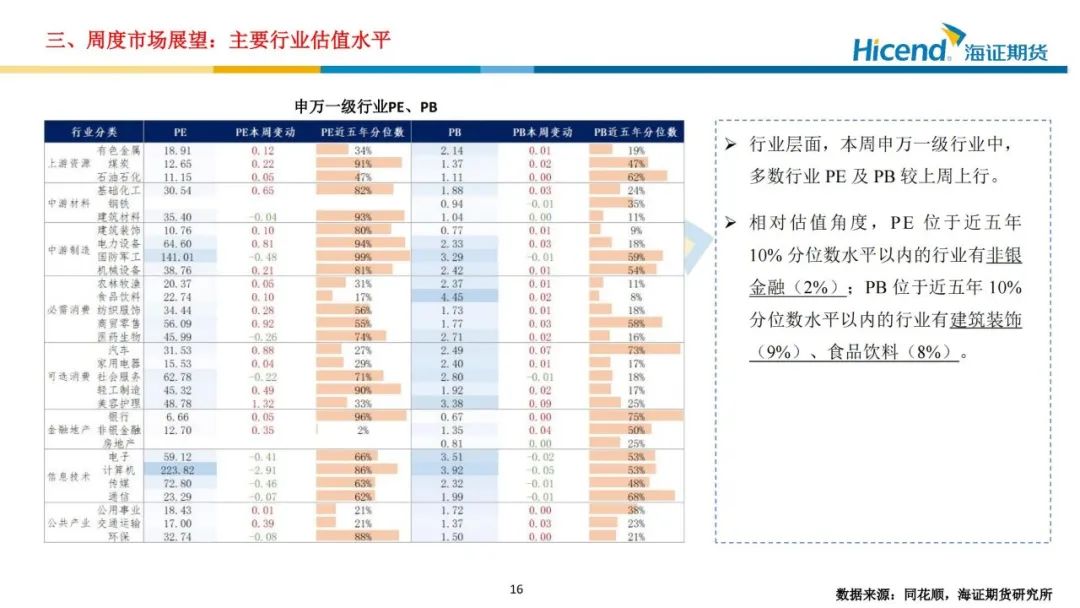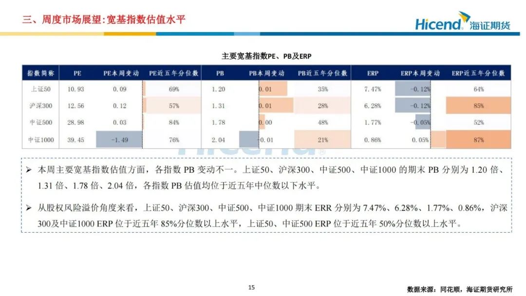 估值角度,各指数PB变动不一。上证50、沪深300、中证500、中证1000的期末PB分别为1.20倍、1.31倍、1.78倍、2.04倍,各指数PB估值均位于近五年中位数以下水平。流动性及资金面,本周10年期国债到期收益率期末值为1.68%,较上周上行4BP;1年期国债到期收益率期末值为1.45%,较上周上行3BP。市场流动性微幅收紧。股票融资周度净买入额为24亿,净买入额较上周回落;股票型ETF资金周度净流入额为-307亿元,净流入额较上周亦有所下降。市场资金参与情绪降温。