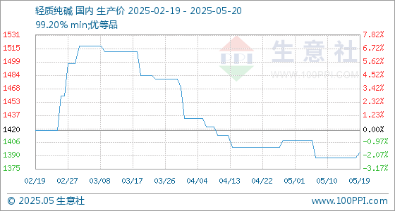 5月20日生意社轻质纯碱基准价为1394.00元/吨