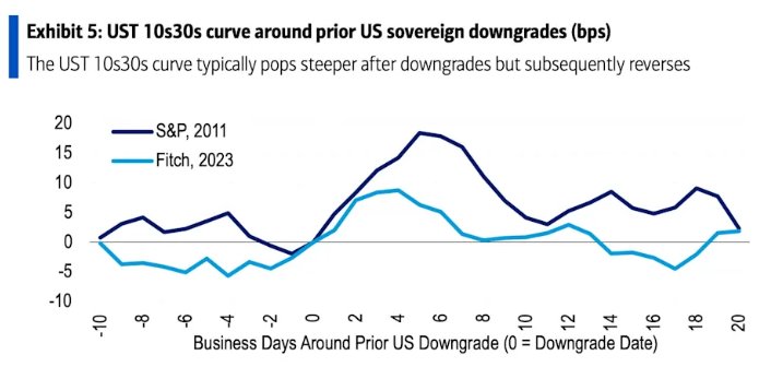 美国银行也附和摩根大通的说法,对客户表示,仅预计美国国债收益率将出现短暂上涨。投资者也不应担心被迫抛售,因为主要的固定收益指数并不要求持有aaa评级才能继续持有美国国债。