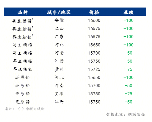 安徽、贵州、宁夏、内蒙市场等炼企近期减量生产,散单余量不多且存有低价惜售情绪,日内鲜有报价出货。