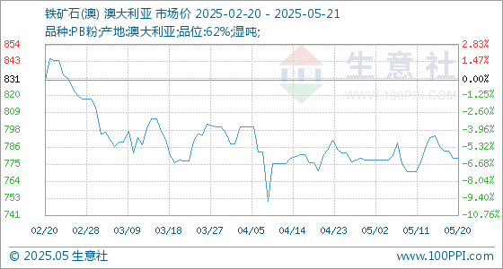 5月21日生意社铁矿石(澳)基准价为779.78元/吨