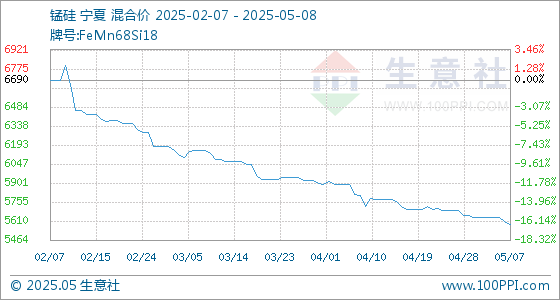 5月8日生意社锰硅基准价为5586.00元/吨