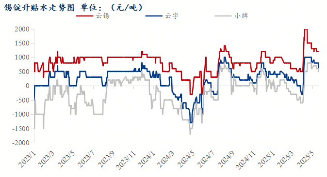 今日套盘商对沪锡2506合约套盘云锡升水1200元/吨左右,普通云字升水600-800元/吨左右;小牌升水500-600元/吨左右,进口锡升水300元/吨左右。