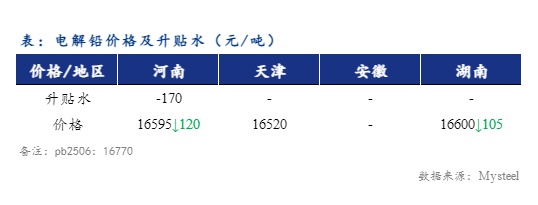 需求端部分市场参与者反馈电池厂有放假计划,或进一步影响需求弱势运行,短期预计铅价维持偏弱震荡,运行区间或在16600-17000元/吨。