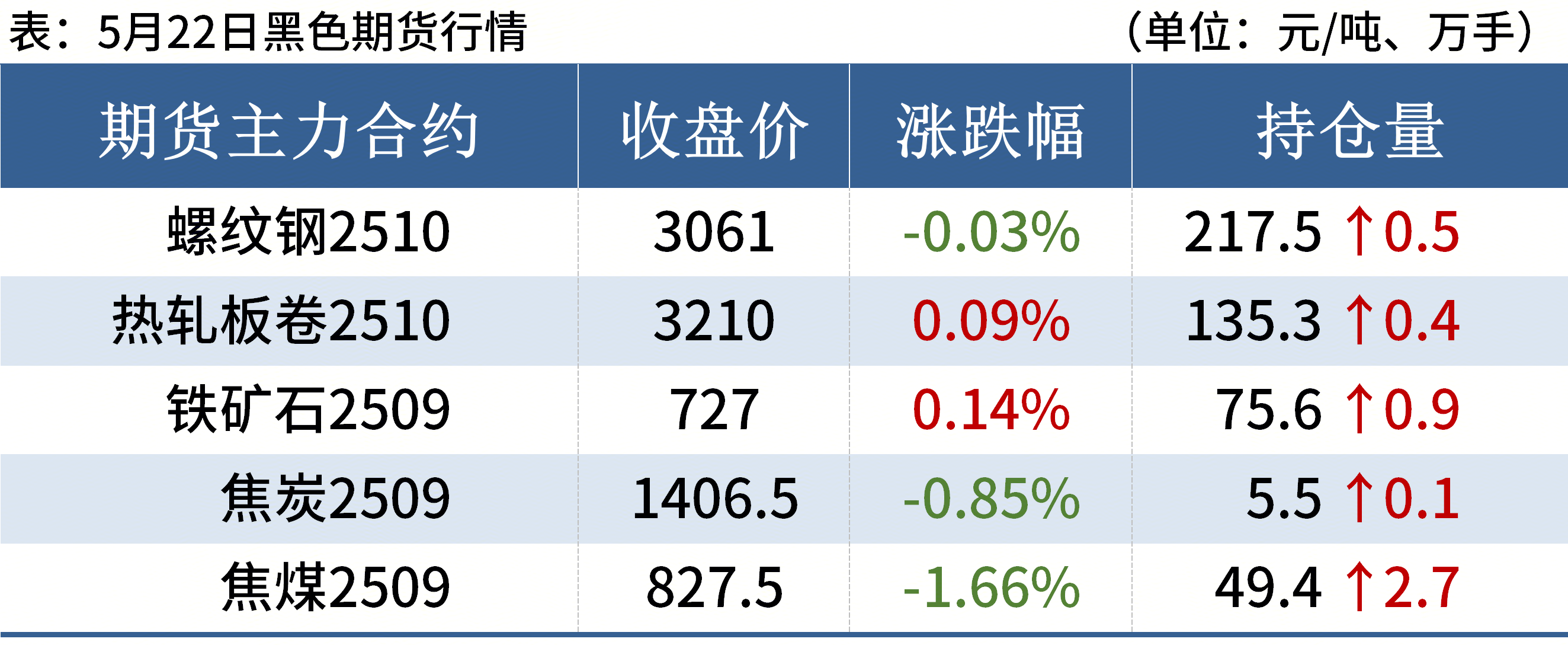 铁矿石:5月22日,山东港口进口铁矿价格较上一工作日价格基本持稳。区域内贸易商报价积极性一般,截至目前成交较少;买盘方面,区域内钢厂维持低库存运行,整体询盘偏弱。目前PB粉主流在763-765;超特粉主流在630-635;PB块主流在910附近。