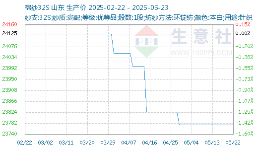 据生意社商品行情分析系统显示:本周棉纱市场价格走势平稳,价格呈现出明稳暗降的特点。截至5月23日,国内山东地区21S纯棉环锭纺现货价格参考22265元/吨左右,与上周持平;32S纯棉环锭纺现货价格考在23775元/吨左右,与上周持平。
