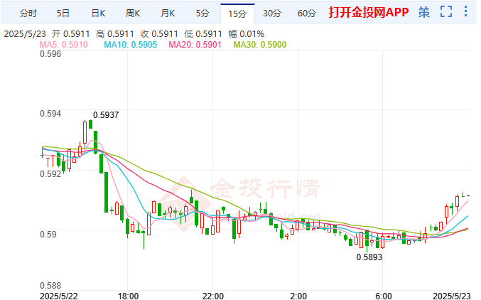 周五(5月23日)亚市早盘,新西兰元/美元走势上行,最新新西兰元兑美元汇率报0.5911,涨幅0.25%,新西兰联储降息阴影笼罩,昨日纽元/美元从周三高点0.59665下跌1.1%。