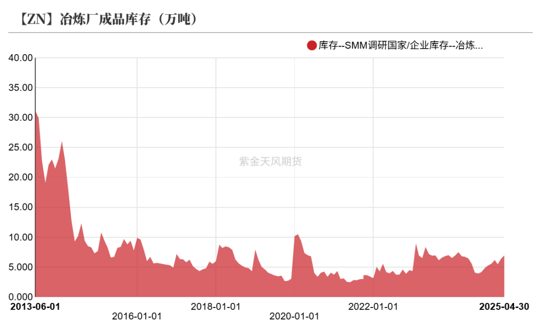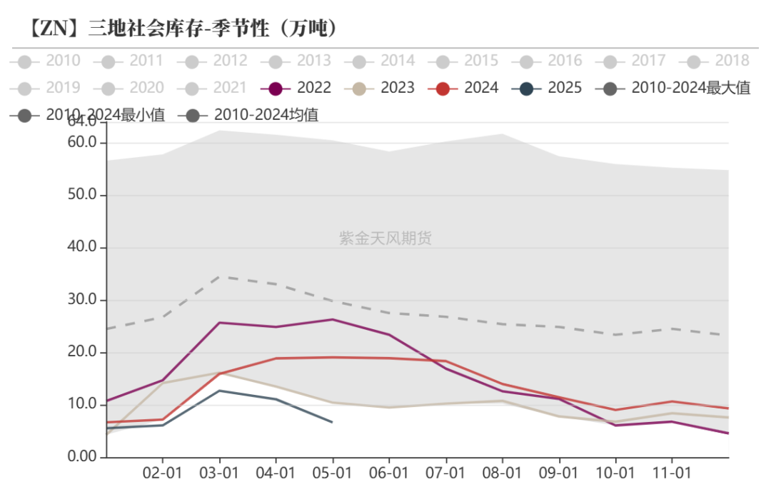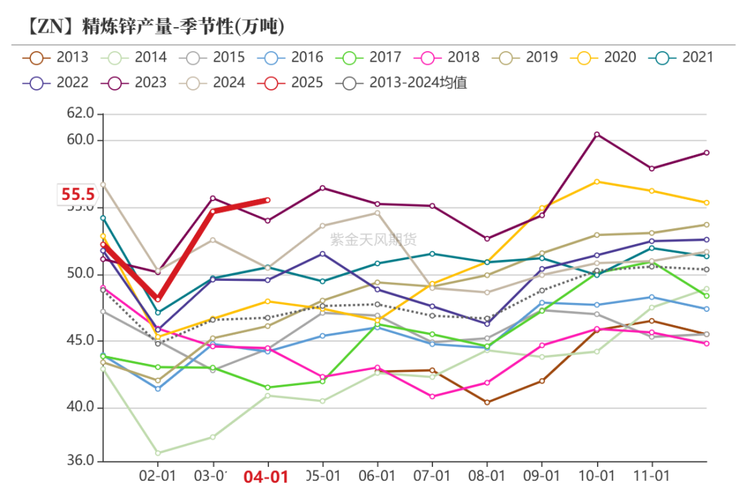 预计2025年5月精炼锌产量环比减少约1万吨。