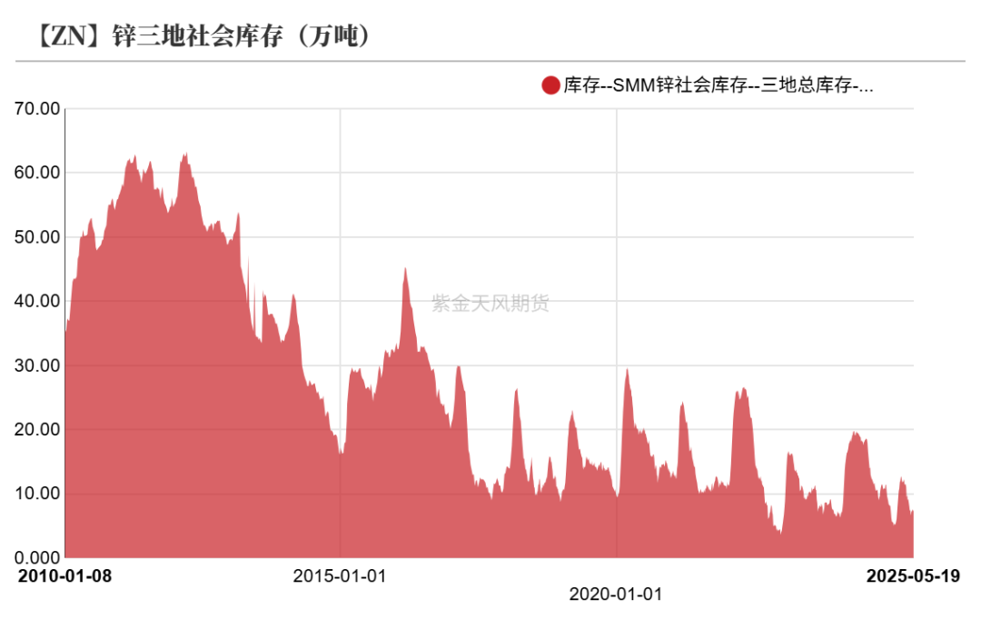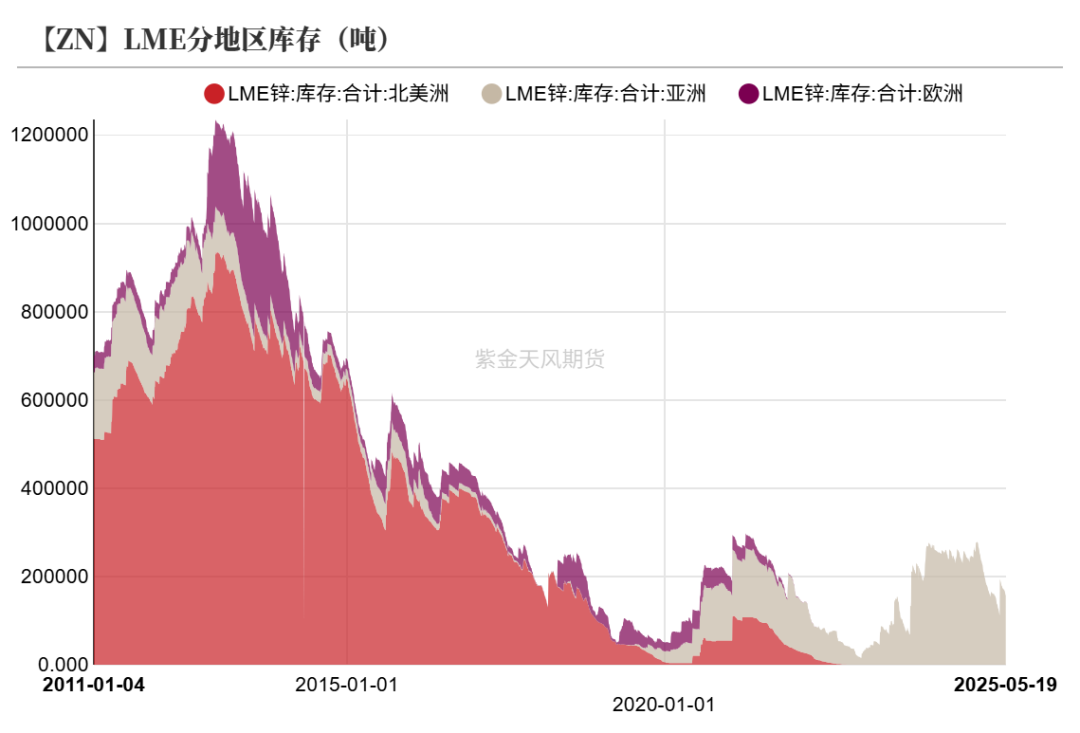 截至5月20日,LME锌库存总计15.67万吨,周度库存变化不大。