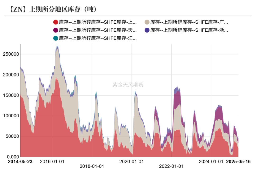 截至5月16日,SHFE精炼锌库存总计报4.64万吨,周度去库800吨。