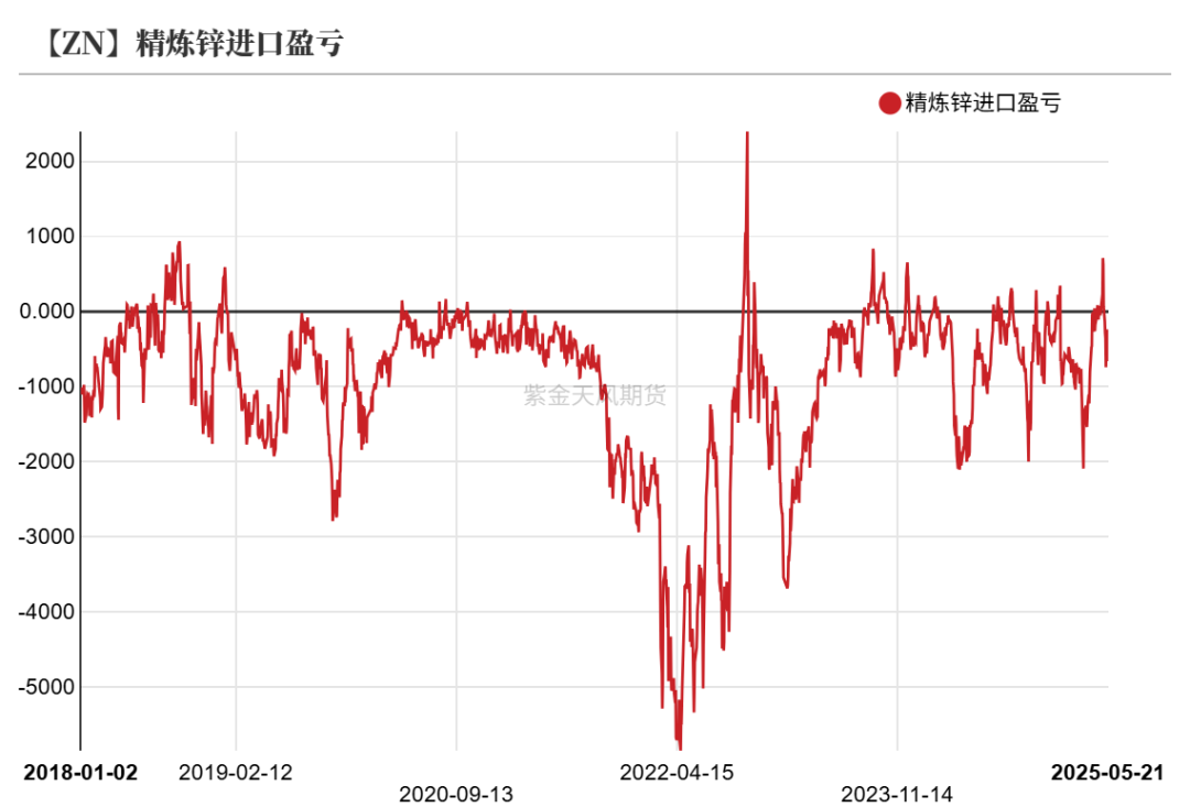 进口利润:偏多 进口窗口关闭,LME锌锭较沪锌现货亏损500元/吨,LME锌锭较沪锌2506期货亏损800元/吨。